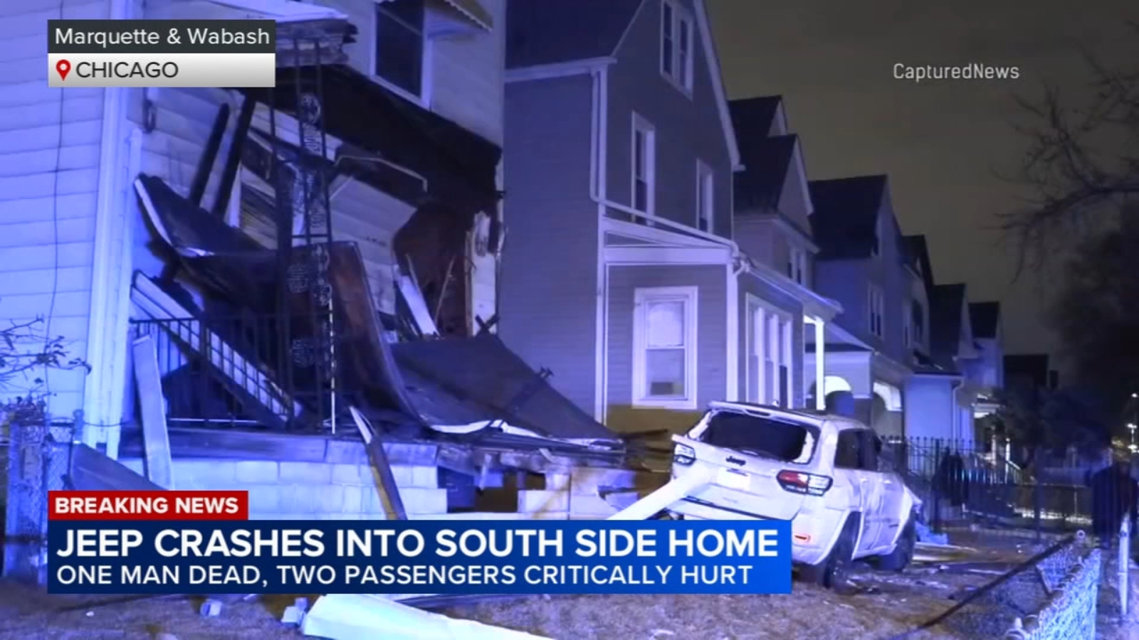 According to Chicago police, the Jeep was traveling westbound on E. Marquette Road when the driver lost control, crashing into residences on the 100 block of E. Marquette Road and causing extensive damage to homes on S. Wabash Avenue. The driver was rushed to University of Chicago Hospital but tragically succumbed to his injuries.