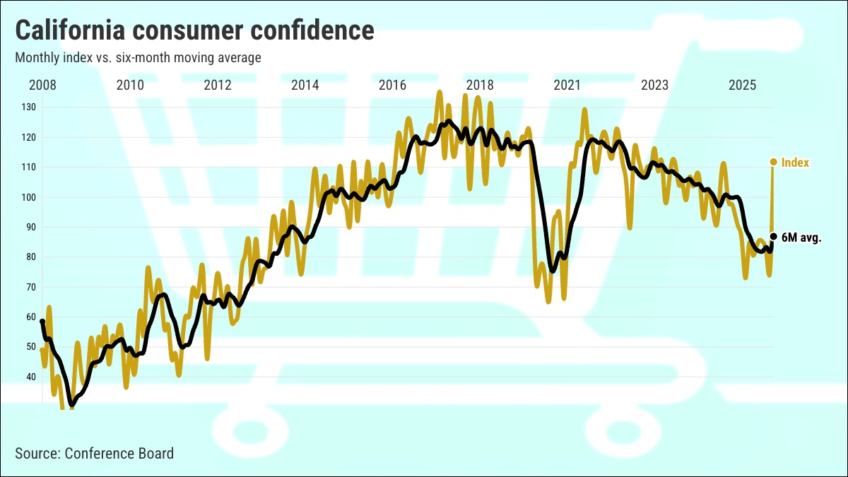 UPDATE: California has experienced a remarkable surge in consumer confidence, with the latest figures showing a stunning 48% jump in December 2025. This unprecedented boost marks the largest one-month increase recorded by the Conference Board and propels the state’s confidence index to a five-year high.