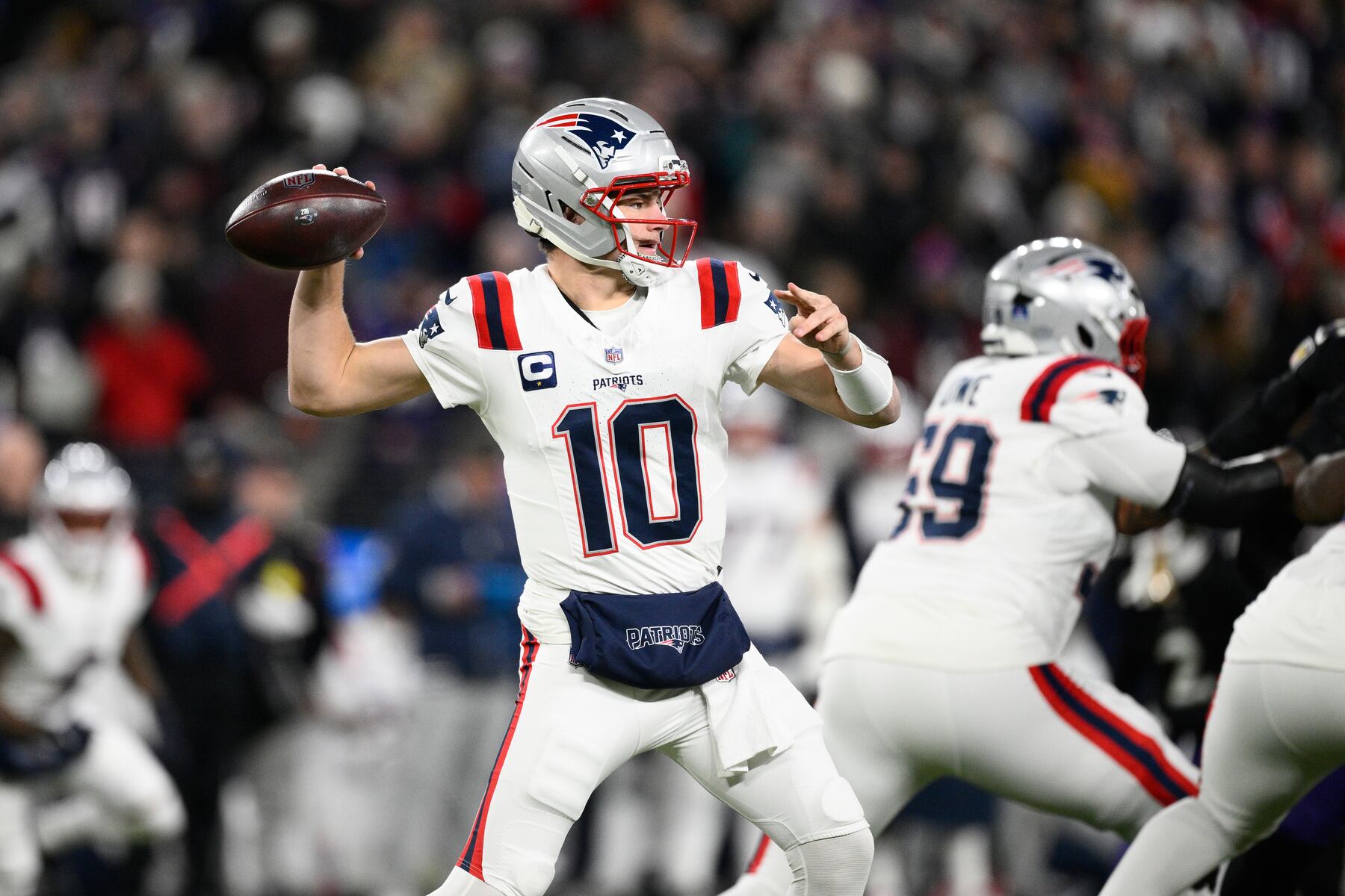The first half saw both teams exchange touchdowns and field goals, with the score locked at 10-10 at halftime. Maye’s resilience shone through as he completed 15 of 20 passes for 178 yards before halftime, including several explosive plays.