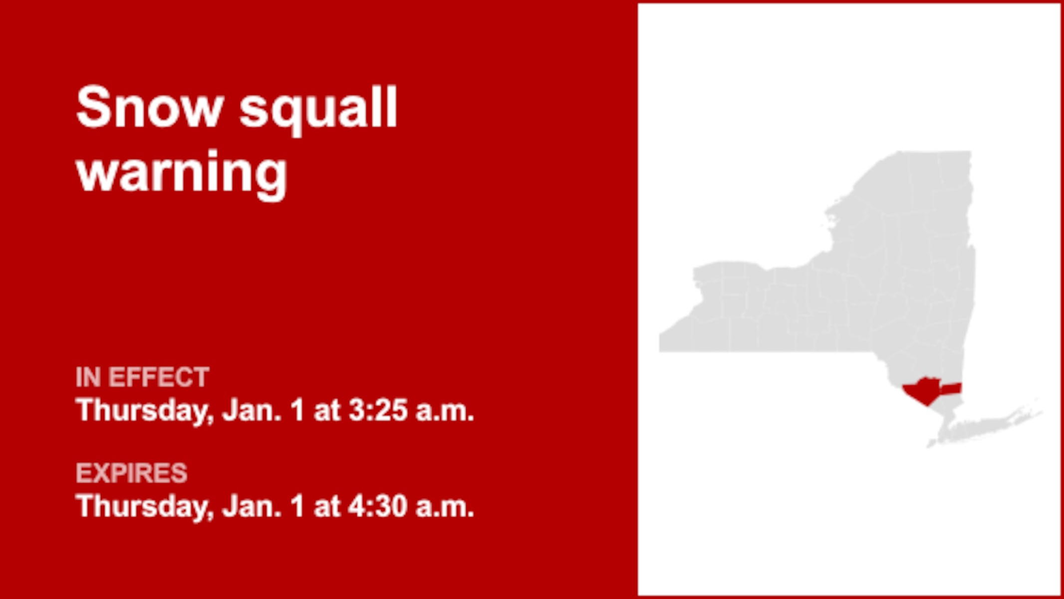 URGENT UPDATE: A snow squall warning is now in effect for Orange and Putnam counties, issued by the National Weather Service at 3:25 a.m. and set to last until 4:30 a.m. This critical warning comes as a snow squall was detected near Highland Lake, just 9 miles southwest of Monticello, moving east at a dangerous speed of 40 mph.