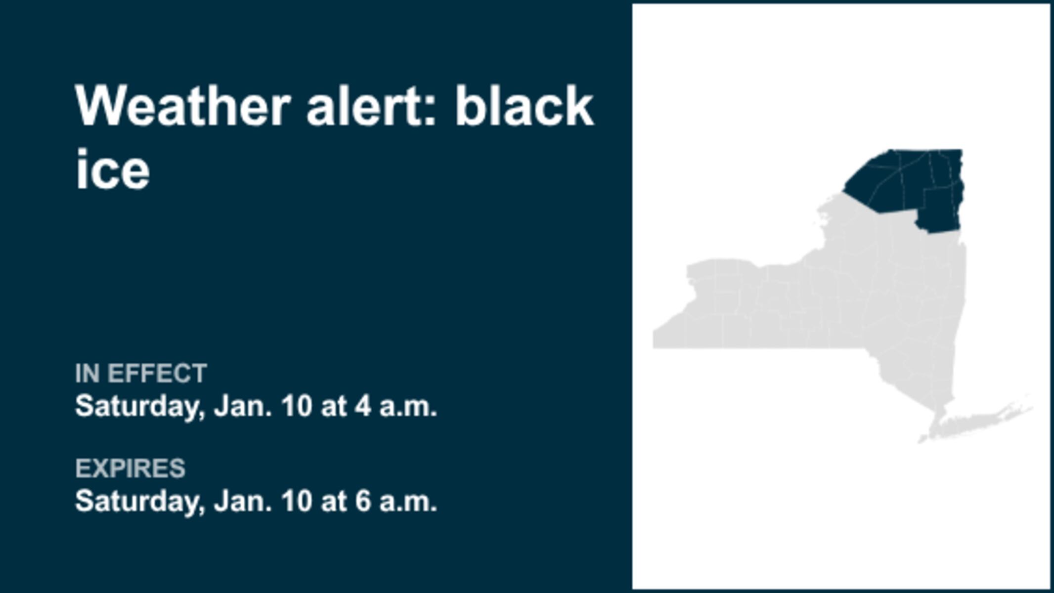 URGENT UPDATE: A severe weather alert has been issued by the National Weather Service for dangerous black ice conditions affecting several counties in New York. The warning was released at 4 a.m.6 a.m..