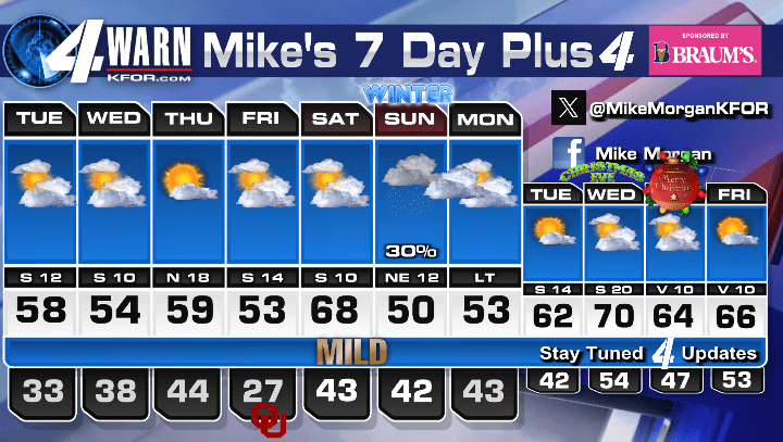 The latest forecast indicates variable clouds today, transitioning to mostly sunny skies by Thursday. This shift is crucial for Oklahomans looking to enjoy outdoor activities as the holiday season approaches.